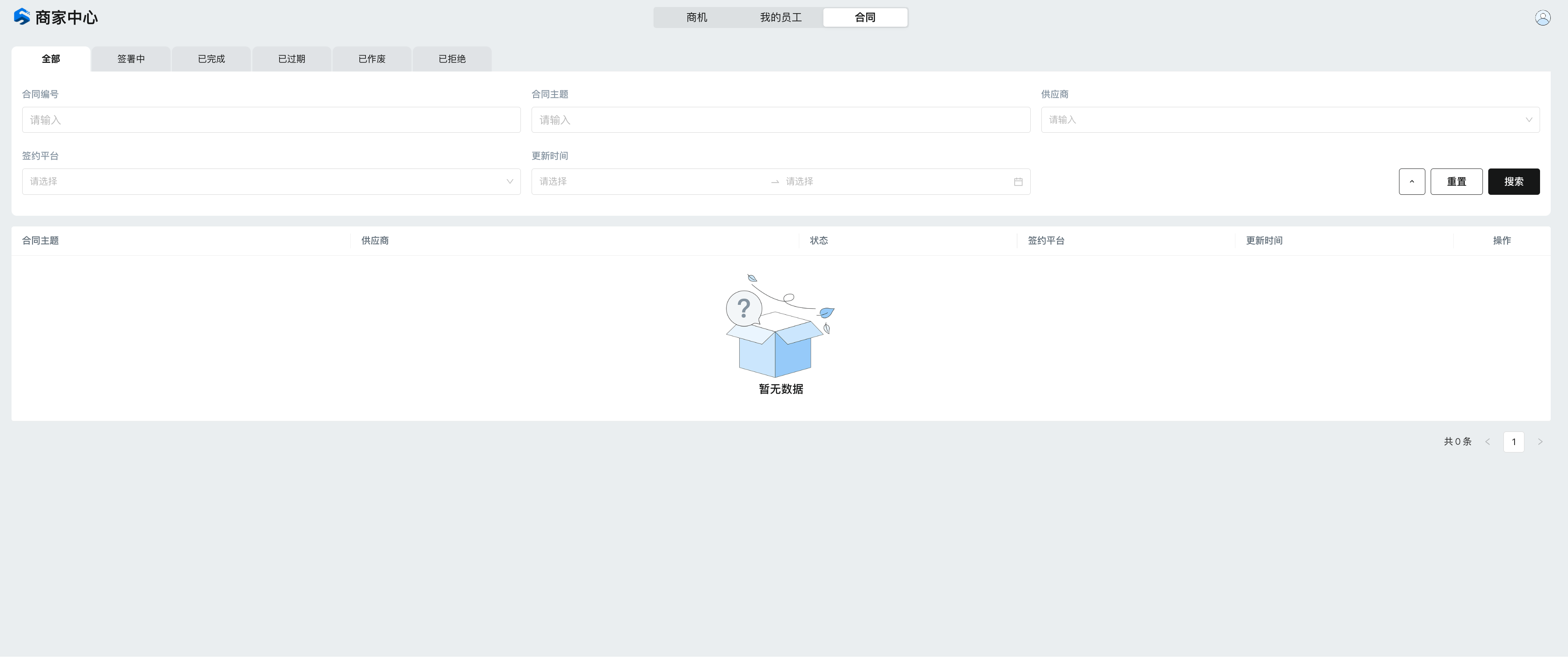 Shippergrid帮助中心商家入驻商机合同本页总览商机合同 1、商机合同 找到合适的海外仓并确定展开合作,平台运营会根据商家需求与海外仓报价上传合同,商家可以进入【商家中心】——【合同】——【待签署合同】——进行合作合同签署; 2、合同管理 商家可以进入【商家中心】——【合同】——对所有合同进行条件筛选——查找不同商机对应的合同及状态——及时进行合作合同签署;