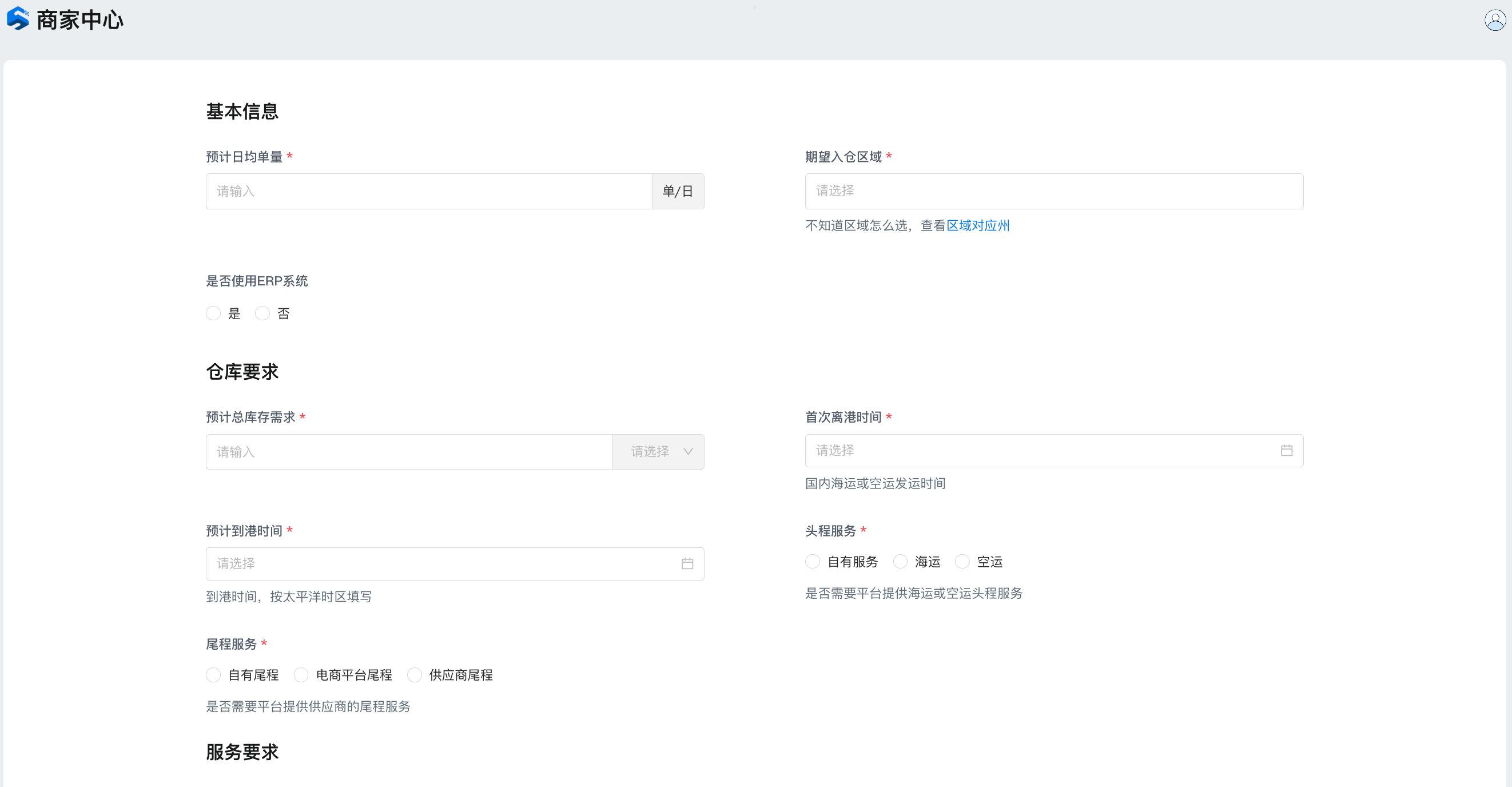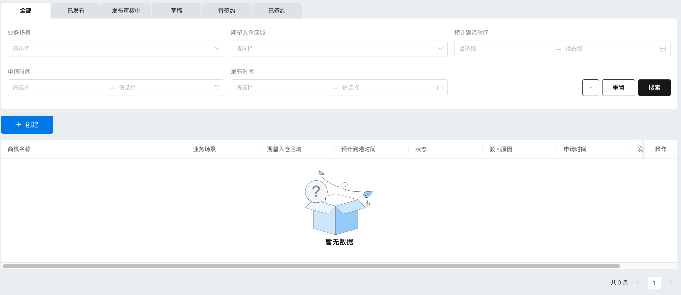 Shippergrid帮助中心商家入驻商机发布本页总览商机发布 1、进入商机发布页面 提交入驻信息,无需等待审核完成,即可提前发布商机,点击入驻提示中的【发布商机】进入; 或登陆状态下点击右侧个人头像点击【商家中心】; 2、发布商机 通过【商家中心】——【商机】——【创建】——输入商机信息——提交并等待审核流程创建有效商机; 3、商机审核 商机提交后会由平台进行审核,核对信息填写完善后由平台运营联系进行沟通报价。