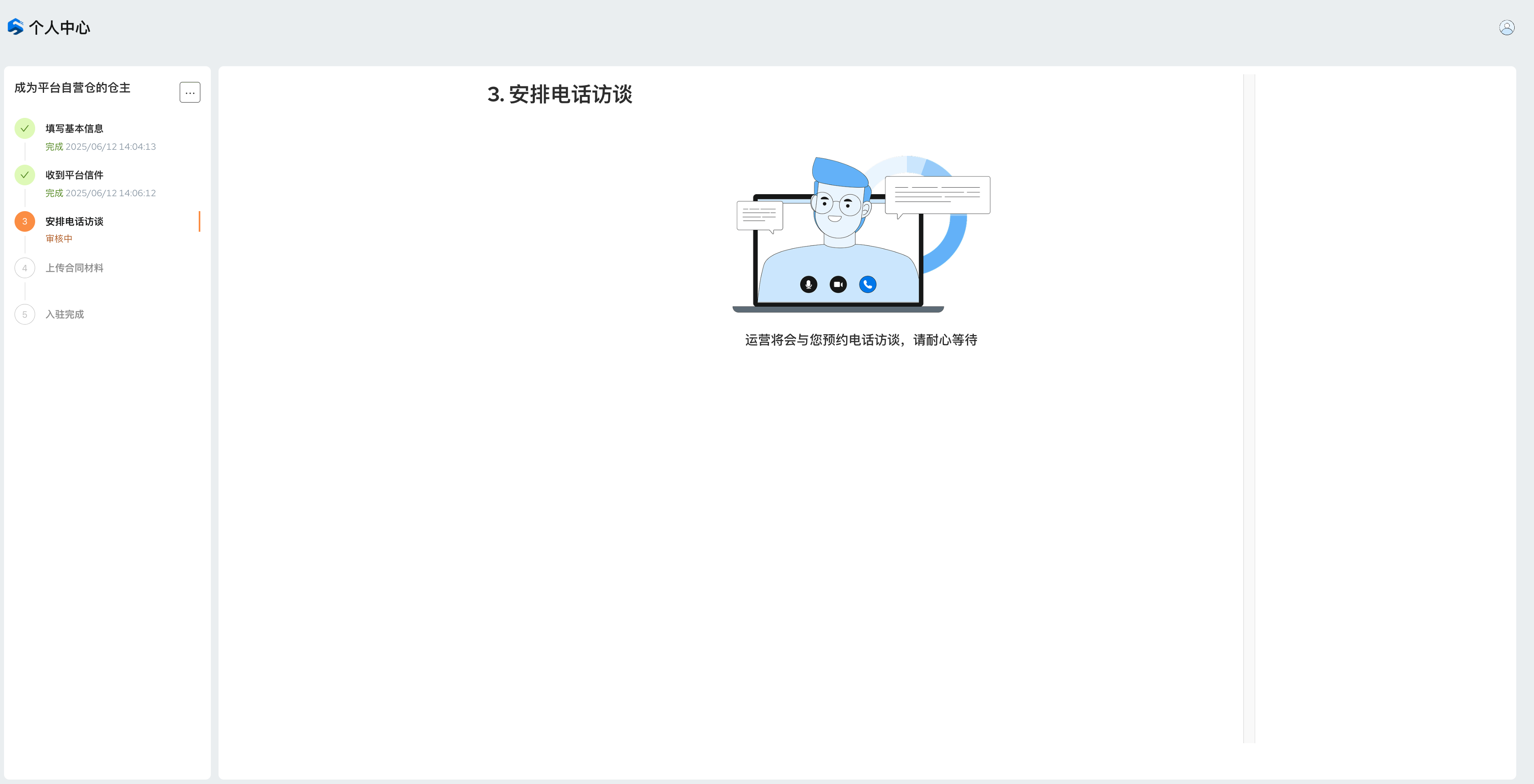 收到平台信件并验证地址后,我们会安排运营与您预约电话访谈,跟您进一步核对信息,讲解注意事项,如果您有任何疑问也可以进行沟通;