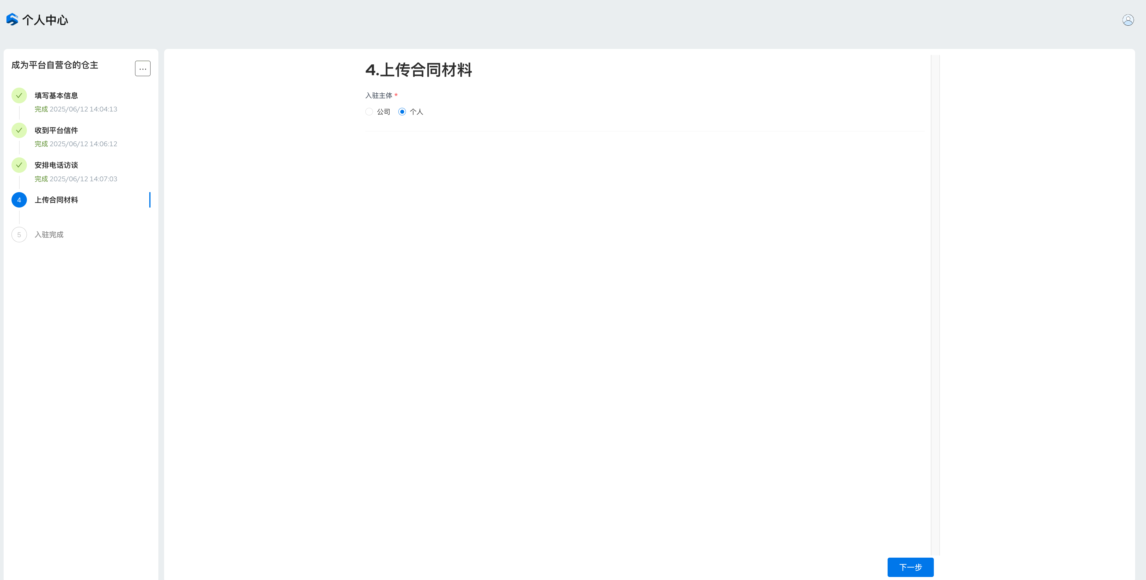 5、上传合同材料