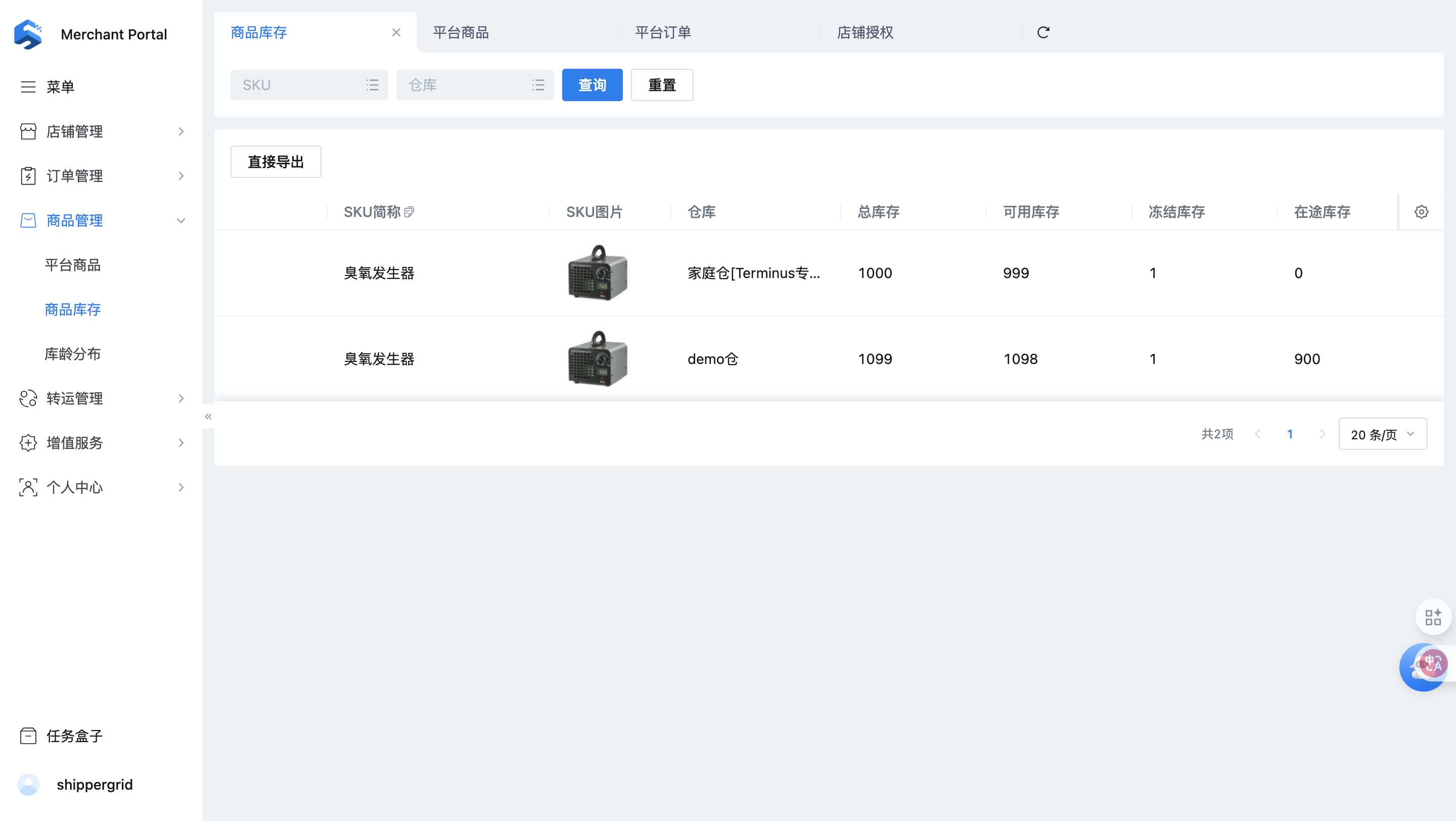 左侧菜单栏:「商品管理」 --> 「商品库存」,可从SKU维度查看「平台商品」的库存情况。