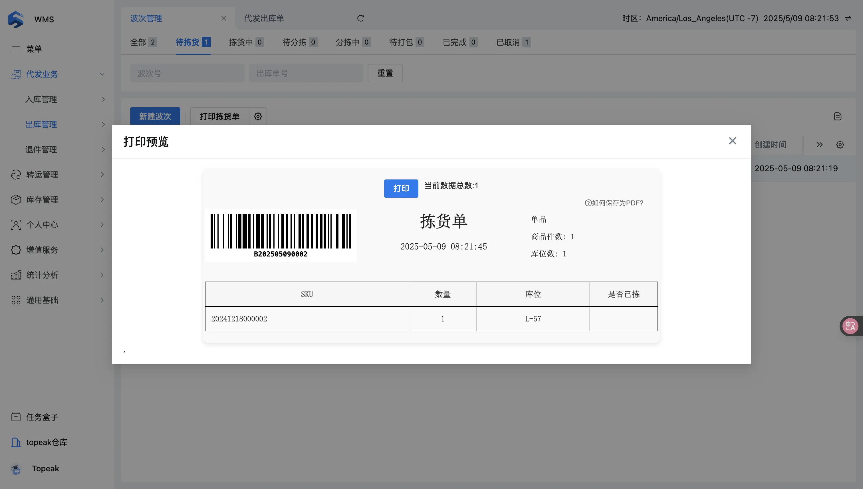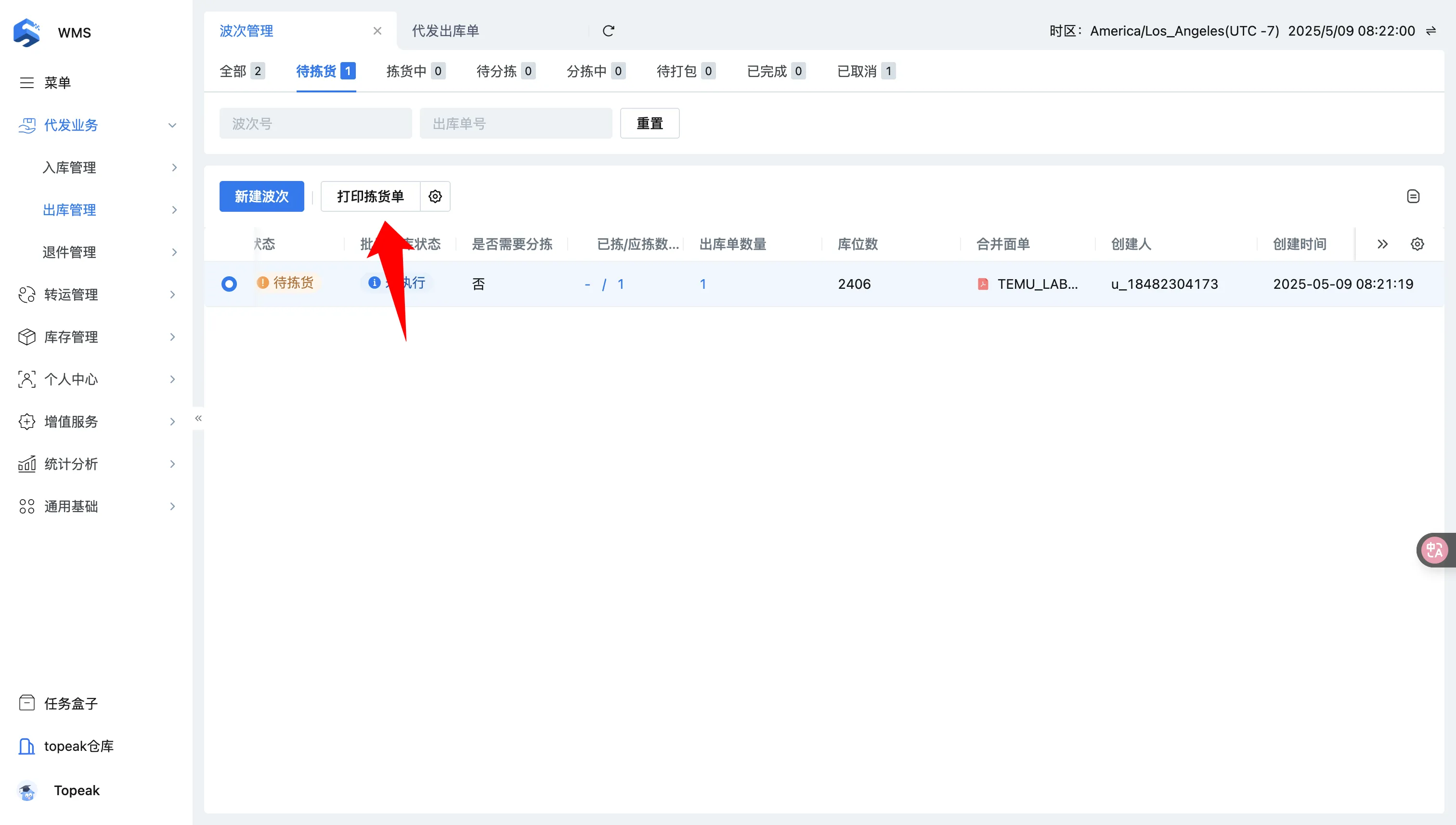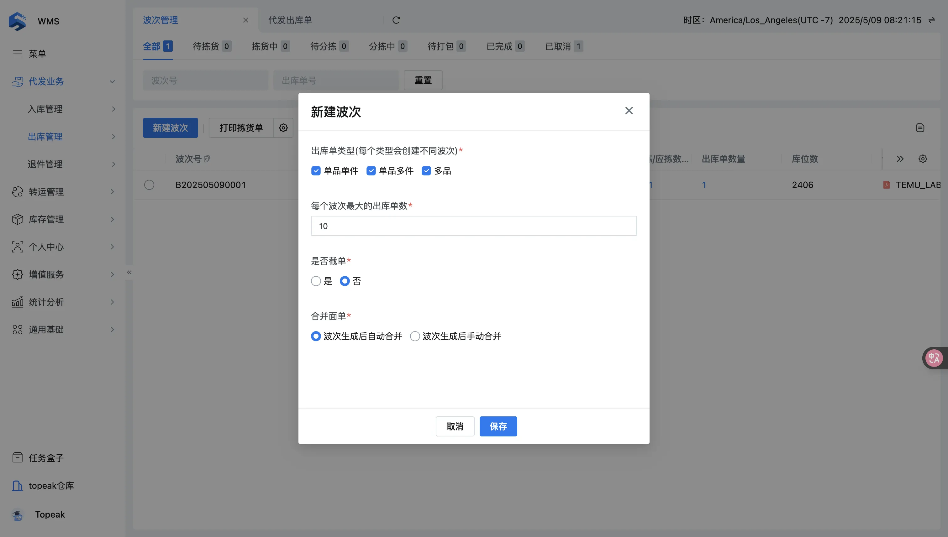 - 每个波次最大的出库单数:超过该数量时,会拆分成多个波次