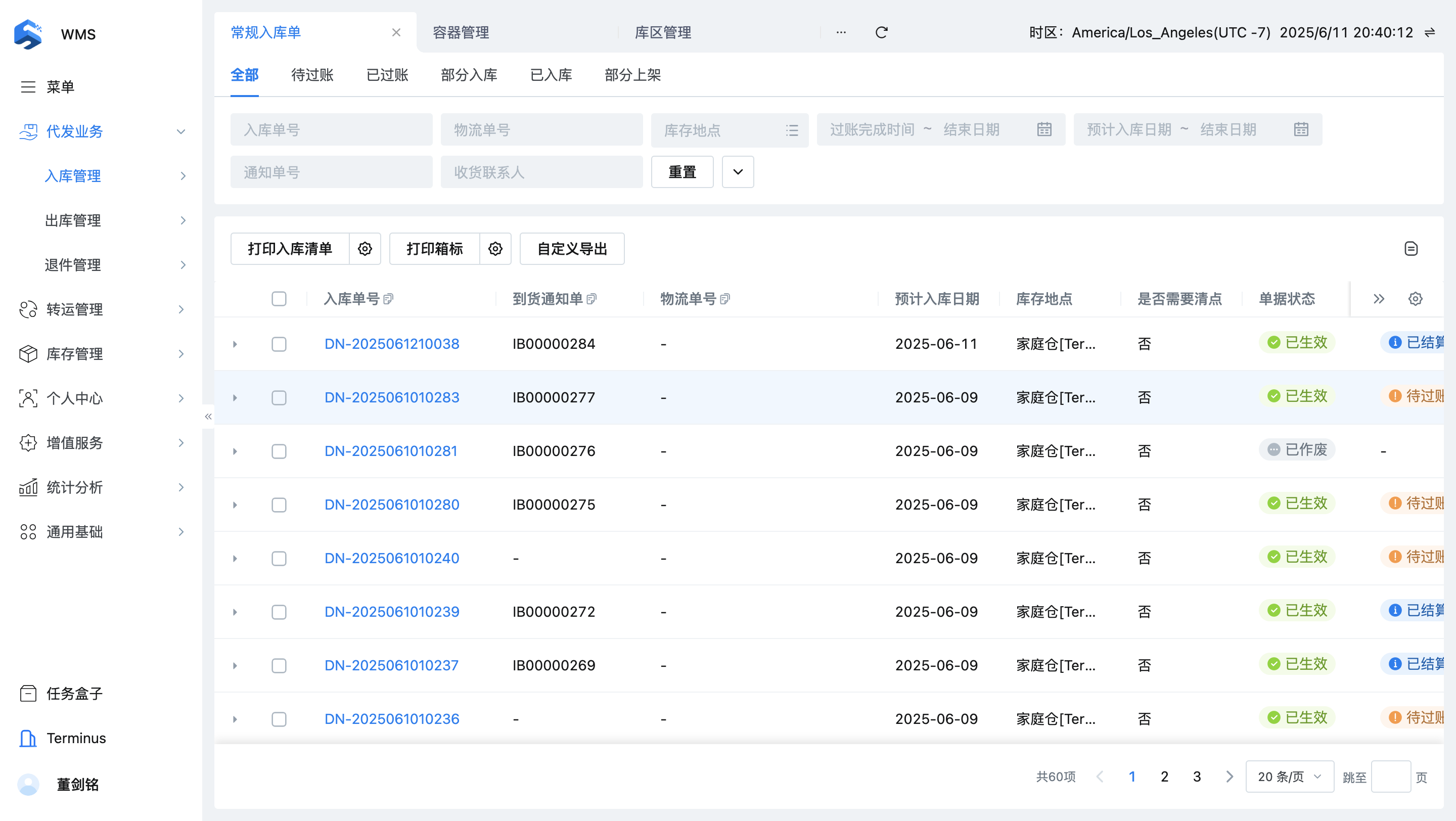 - 在入库单管理页面,可以查看卖家提交的入库预报